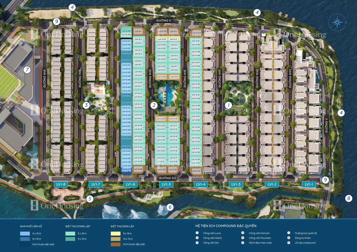 Tổng thể bố trí mặt bằng phân khu Bán đảo villa vườn Sola Đảo Ánh Dương tại The Global City